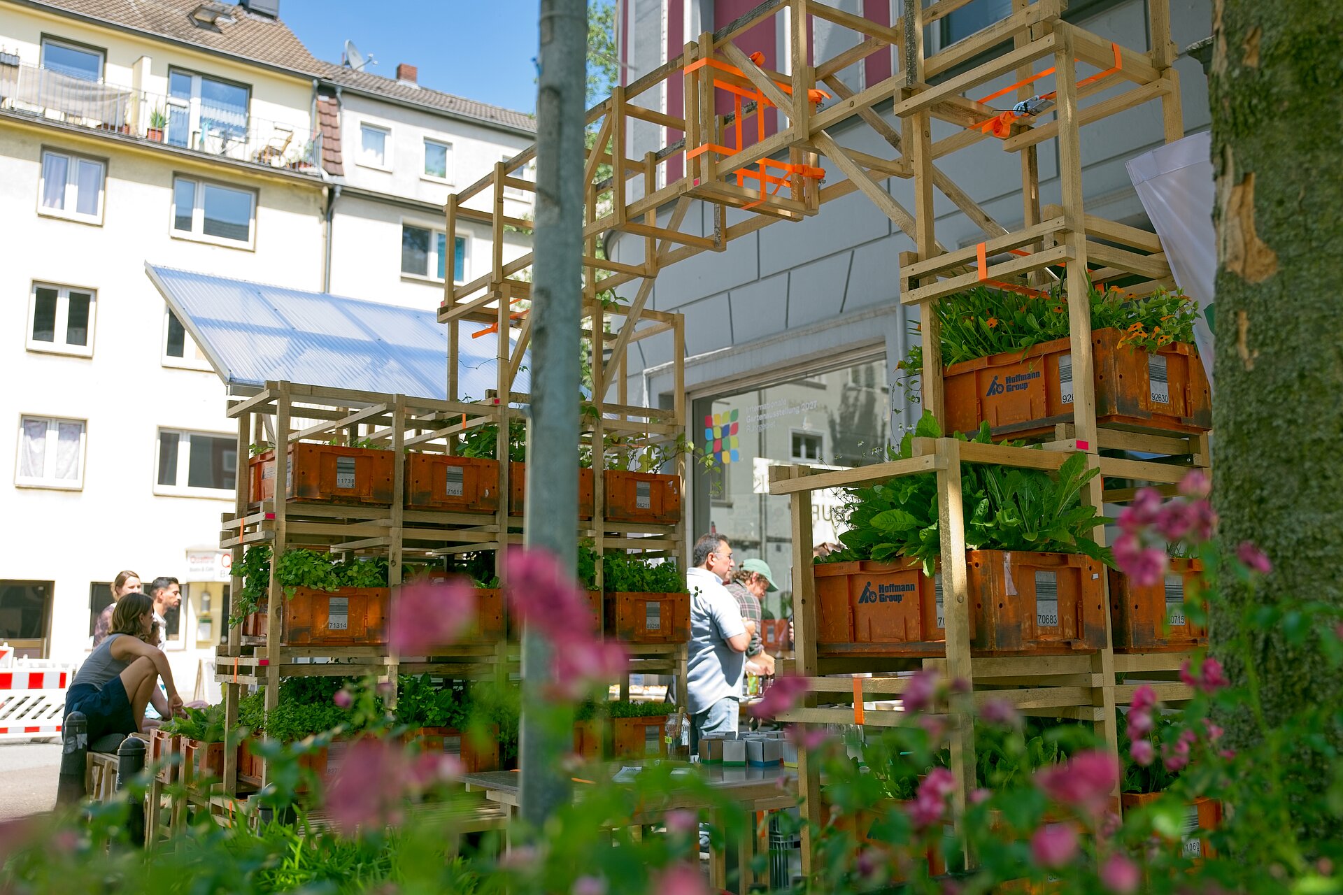 In Duisburg-Hochfeld beginnen wir diesen Prozess mit der ersten Pop-Up Bühne, die als zentraler Begegnungsort im Stadtteil und in unmittelbarer Nähe zum Zukunftsgarten fungiert.
