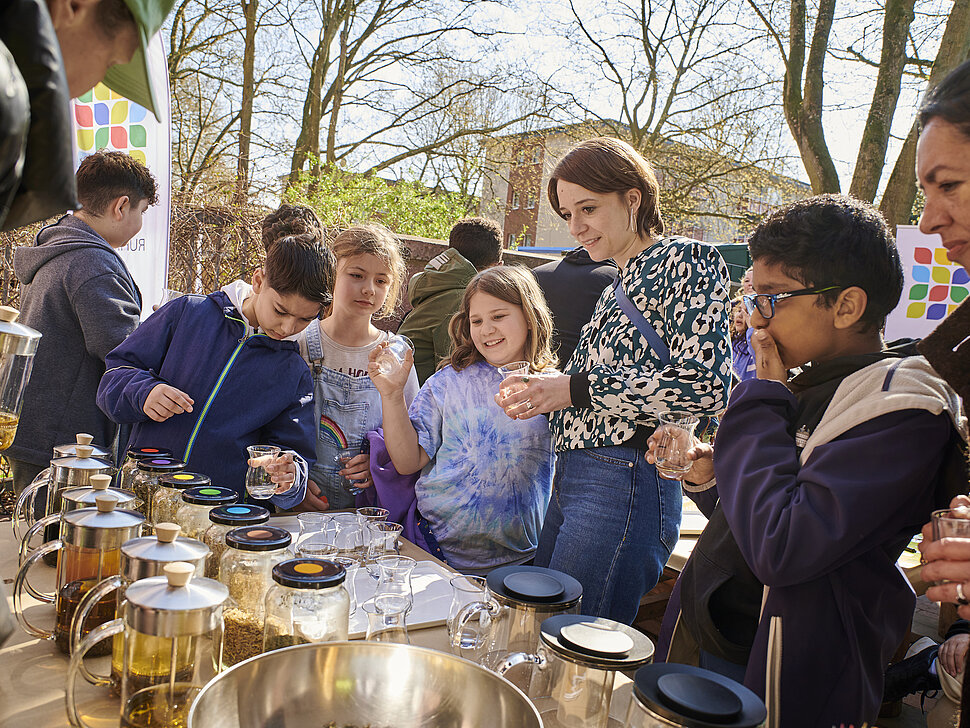 Auf einer Roadshow durch das Ruhrgebiet werden die Teemischungen ausgeschenkt, begleitet von Gesprächen über Grünflächen, Wasserkreisläufe und nachhaltige Stadtentwicklung. In leerstehenden Gebäuden entstehen Pop-up-Teehäuser als offene Treffpunkte, die Raum für Austausch, Lernen und Begegnung bieten.